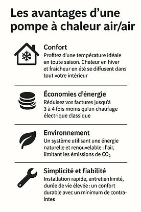 La pompe à chaleur air/air, aussi appelée climatisation réversible, assure votre confort toute l’année.